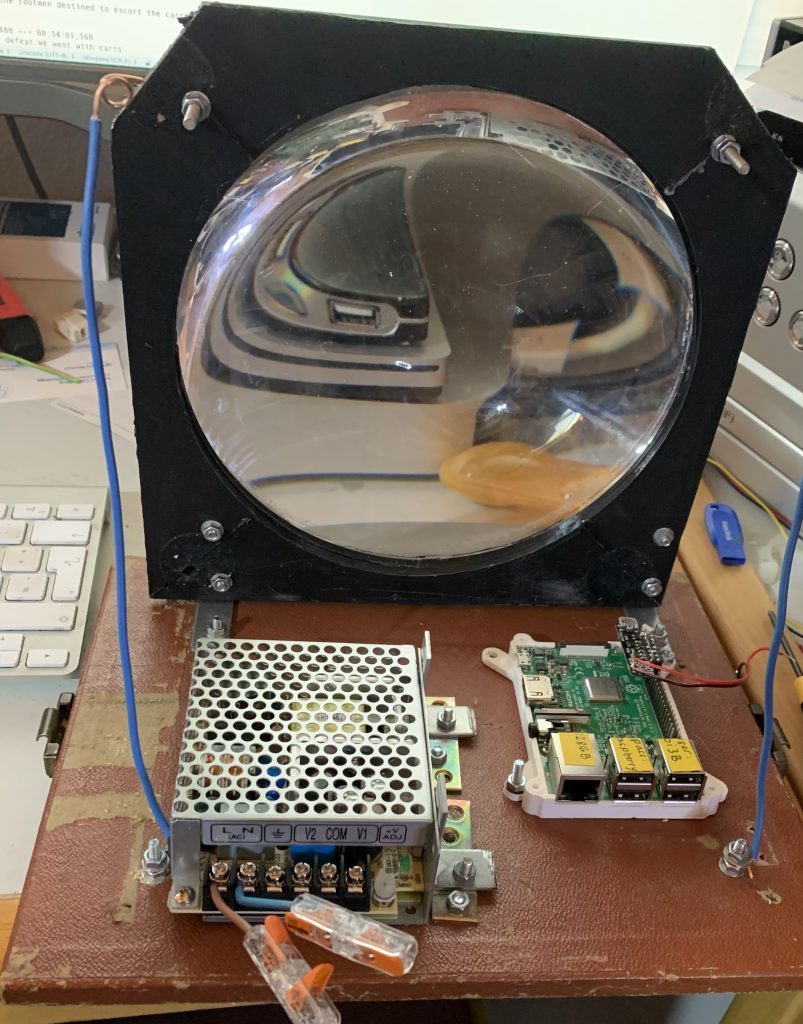 „Cyclops“ is a world machine of sorts. A rather large porthole-type lens (originally used in a chip lithograph machine) creates an almost unreal 3D effect. The whole thing is packed in a stylish mid-century case that used to be home for an 8mm movie film projector „Eumig P8 imperial“.