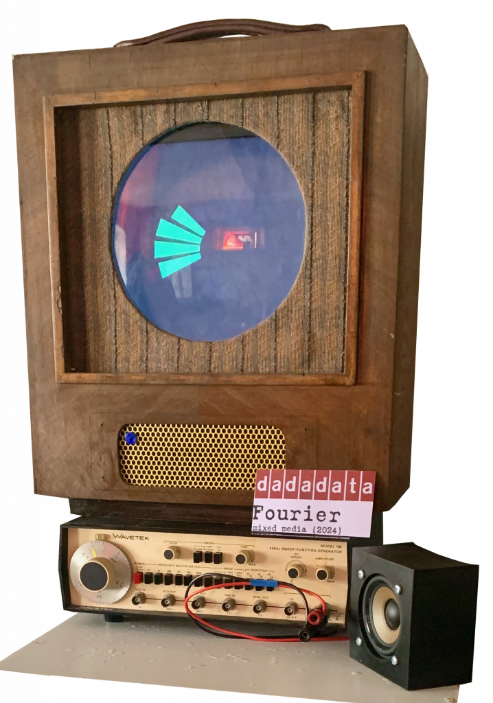 »Fourier« (im Gehäuse eines Blaupunkt-Radios aus den 1930er Jahren) reagiert auf Umgebungsgeräusche und zerlegt mit Hilfe der Fourier-Transformation die Tonschwingungen in einzelne Frequenzbänder. Diese werden in unterschiedlichen Formen und Farben in Echtzeit dargestellt.